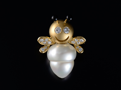 みつばちブローチ sold out 大きさ:本体天地 約3.2cm 品番:MTK03 素材:K18(イエローゴールド) 詳細:ダイヤモンド0.632ct ブラックオニキス 南洋珠 |