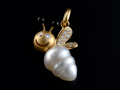 みつばちペンダント sold out 大きさ:本体天地 約2.8cm 品番:MTK01 素材:K18(イエローゴールド) 詳細:ダイヤモンド0.464ct ブラックオニキス 南洋珠 |