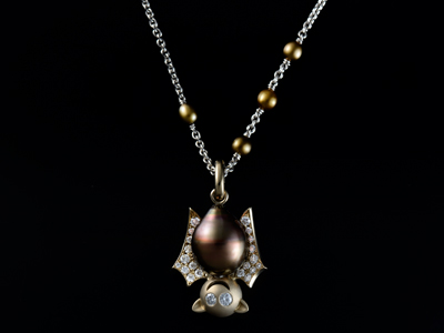 コウモリペンダント sold out 大きさ:本体探知 約2.3cm 品番:MTK08 素材:K18(ホワイトゴールド) 詳細:ダイヤモンド0.592ct 黒真珠(茶系) チェーンは別売 |