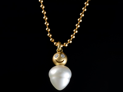 ニコちゃんペンダント sold out 大きさ:本体探知 約2.6cm 品番:MTK06 素材:K18(イエローゴールド) 詳細:ダイヤモンド0.22ct 南洋珠 チェーンは別売 |