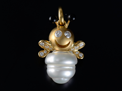 みつばちペンダント sold out 大きさ:本体天地 約2.6cm 品番:MTK02 素材:K18(イエローゴールド) 詳細:ダイヤモンド0.432ct ブラックオニキス 南洋珠 |