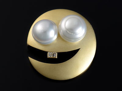 笑いブローチ sold out 大きさ:本体天地 約3.4cm 品番:MTK14 素材:K18(イエローゴールド) 詳細:ダイヤモンド0.12ct 南洋珠 |