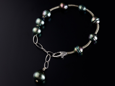 黒真珠ブレスレット sold out 大きさ:全長 約21.5cm 品番:MTK13 素材:プラチナ 詳細:組縄(くみひも) |